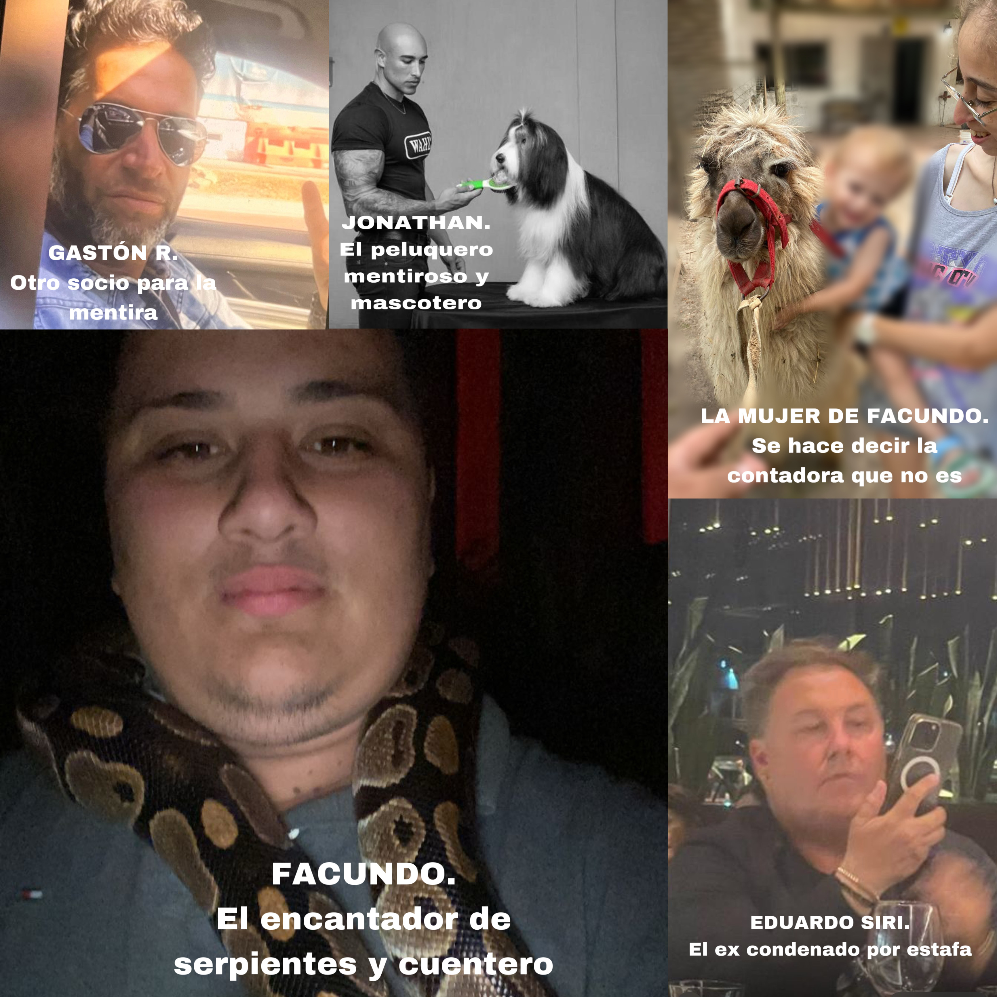 En el medio surgen otros dos socios de la mentira: Gastón, un falsificador de documentos públicos de gran precisión, y el ex convicto Eduardo Siri, condenado por la Justicia Penal de La Pampa, por la venta de un auto de alta gama de manera fraudulenta y documentación apócrifa. La condena fue de 3 años de prisión con una pena efectiva de una detención carcelaria de un año efectivo de Penitenciaría.