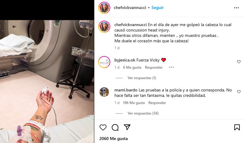 Vannucci se escuchaba realmente preocupada, dolida por todo lo que está viviendo, al igual que sdus hijos. Pero también profundizó en lo que es su calvario diario: "Yo le pago la obra social y medicinas. En el día de ayer evidentemente no las tomó. No soy partidaria de pelear frente a niños, es malo. Abre la puerta fuerte, me caigo y me lastimo la cadera, después me golpeó la cabeza con el escritorio por lo que tengo una herida interna. Mis hijos estaban presentes".