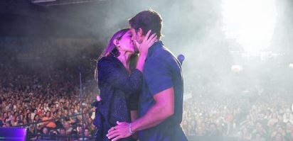 Jimena lució su pancita de cuatro meses y un poquito más a lo largo de la velada. Cantó, bailó y arengó a la gente durante todo el show. En sus redes compartió momentos de esa gran noche y entre esas perlitas, mostró el momento en el que su amor y padre de su bebé en camino, Matías Palleiro, le dio un beso que despertó el griterió de todos los presentes.