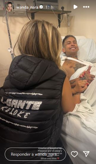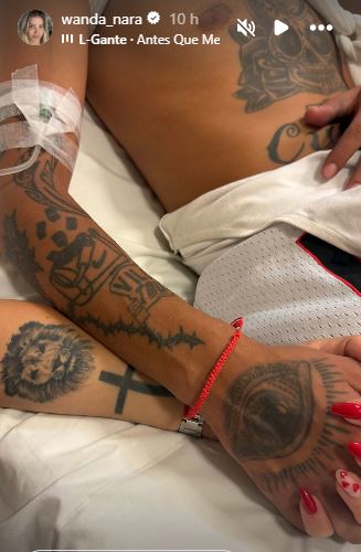 Wanda subió a sus historias imágenes de sus hijos en cuatriciclos, en el mar y contándole al mundo que estaban viviendo buenos momentos, hasta que de repente apareció la imagen de L-Gante sobre una camilla de hospital con vendas y con la cara tratando de demostrar que estaba bien.