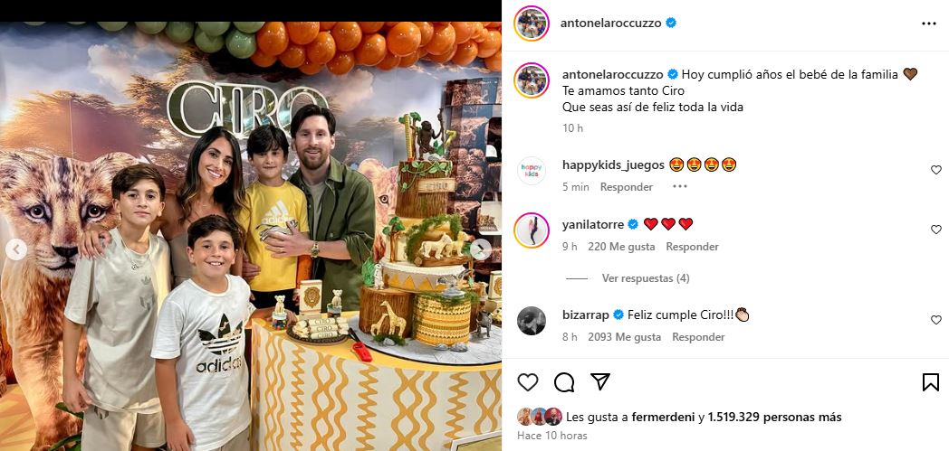 Hoy, 11 de marzo, Ciro, el benjamín de la familia, cumplió sus primeros siete añitos de vida y Antonela, su mamá, decidió saludarlo en sus redes sociales, compartiendo imágenes y una muy especial dedicatoria: "Hoy cumplió años el bebé de la familia 🤎 Te amamos tanto Ciro. Que seas así de feliz toda la vida".