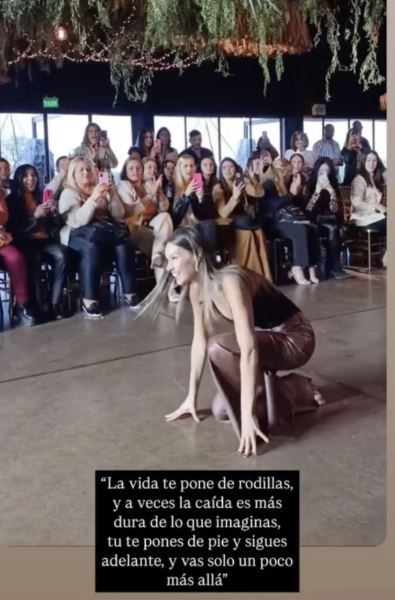 Carolina Ardohain utilizó la imagen que se hizo viral, con ella de rodillas en la pasarela, para dejar en claro un mensaje que, a ella, la acompaña en su día a día: “La vida te pone de rodillas, y a veces la caída es más dura de lo que imaginas, tu te pones de pie y sigues adelante… y vas solo un poco más allá”.
