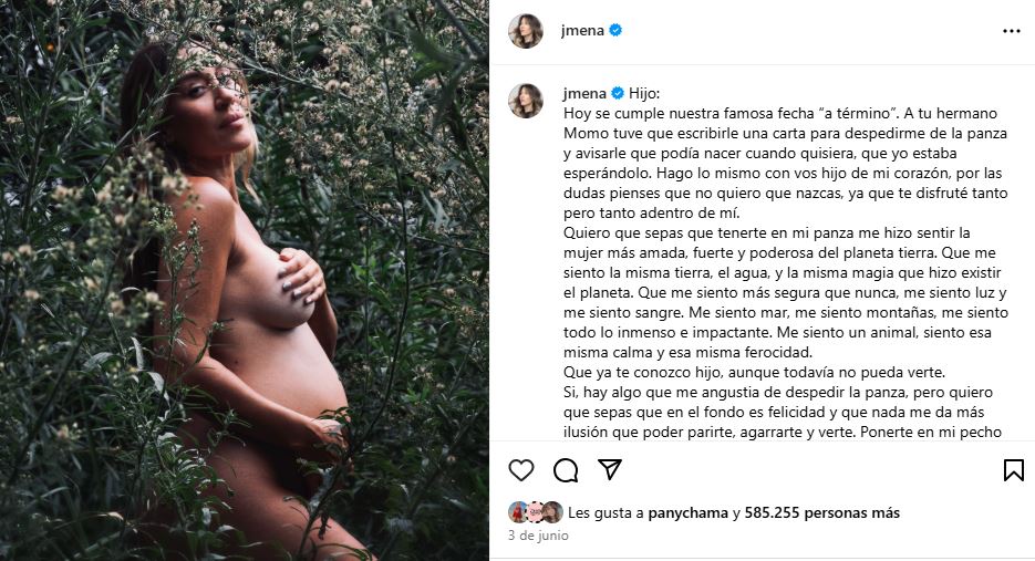 Sin lugar a dudas, la pareja está atravesando este tiempo de plenitud como familia y disfrutando de las primeras horas de Arturo. Diciéndole al oído, lo mismo que en aquella carta: "Quiero que sepas que tenerte en mi panza me hizo sentir la mujer más amada, fuerte y poderosa del planeta tierra. Que me siento la misma tierra, el agua, y la misma magia que hizo existir el planeta. Que me siento más segura que nunca, me siento luz y me siento sangre. Me siento mar, me siento montañas, me siento todo lo inmenso e impactante. Me siento un animal, siento esa misma calma y esa misma ferocidad".