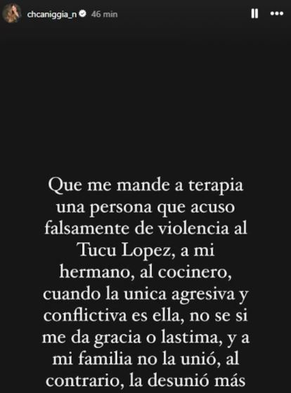 Este descargo, Charlotte Caniggia lo subió en sus historias de Instagram, pero poco después del posteo lo borró ¿arrepentimiento o consejo legal?