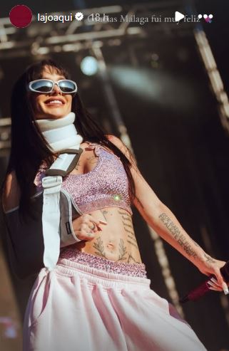 El show debe continuar y así lo hizo saber "La Joaqui" que adaptó parte de sus coreografías para salir al ruedo y compartir su música y su baile. Después del show, la cantante subió un posteo en sus historias a la que acompañó con un: "Gracias Málaga. Fui Feliz". Y como no serlo si se plantó sobre el escenario frente a un público con ganas de verla y aplaudirla por su música y su fuerza ante la adversidad.