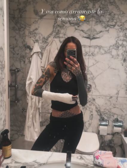 La otra persona que salió a desdramatizar la situación fue nada más y nada menos que Candelaria, que desde sus redes sociales y mostrando su brazo, escribió: "¿Y vos cómo arrancaste la semana?"