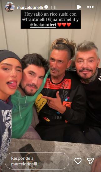 "Hoy salió un rico sushi con @frantinelli1 @juanittinelli1 y @lucianotirri" con estas palabras, Marcelo Tinelli mostraba que una cena casual volvió a unirlo a dos de sus hijos, sin Cande, sin Mica y sin Lolo... la relación familiar, de a poco, parece encaminarse.